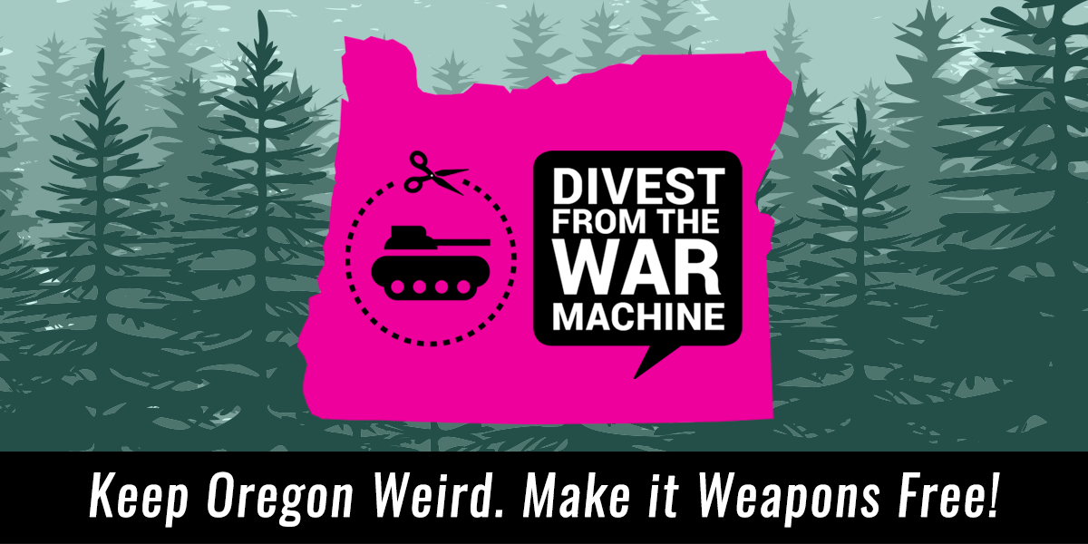 This Divest from the War Machine Campaign empowers Oregonians to remove state assets from war. By removing public investments our state holds in weapons manufacturers, we can reclaim how our communities invest in the growth and success of where we live. Together, we can create a groundswell against the companies that profit from the war that steals from our communities, our children, and our futures.